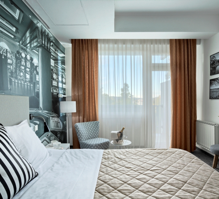 Soba Classic je primerna za bivanje do 2 gostov. Soba je opremljena z zakonsko posteljo, kopalnica pa s tuš kabino ali kadjo. Na voljo vam je brezplačen wi-fi, prost vstop v bazenski kompleks in fitnes v Perli ter brezplačno parkiranje. V ceno je vključen bogat samopostrežen zajtrk, 16 ur na dan pa vam je na voljo tudi sobna strežba.